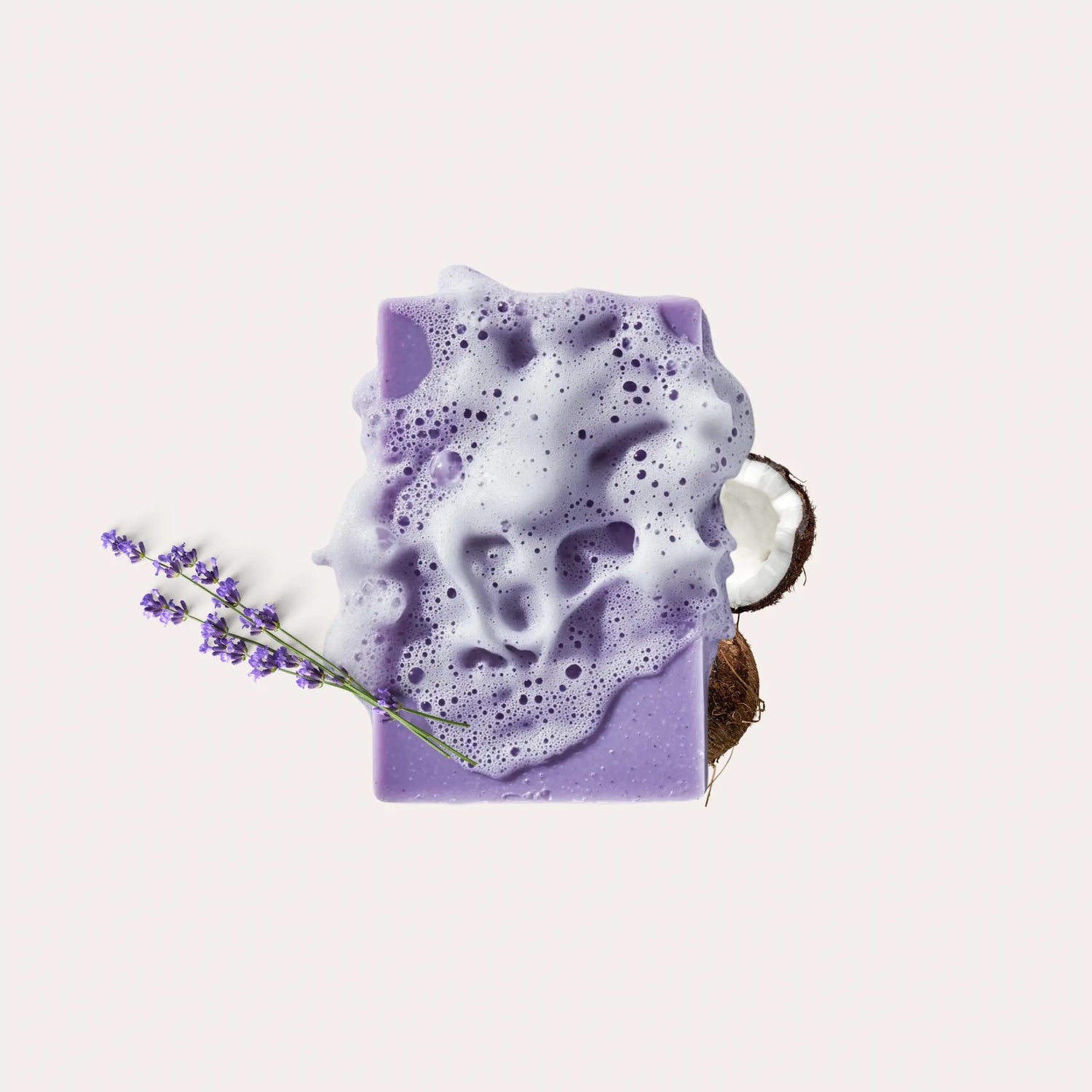 Sanfte Entspannung für Körper und Sinne. Unsere handgemachte Naturseife verbindet den beruhigenden Duft von Lavendel mit der pflegenden Frische der Kokosnuss. Sie reinigt schonend, spendet Feuchtigkeit und hinterlässt ein seidig-weiches Hautgefühl.