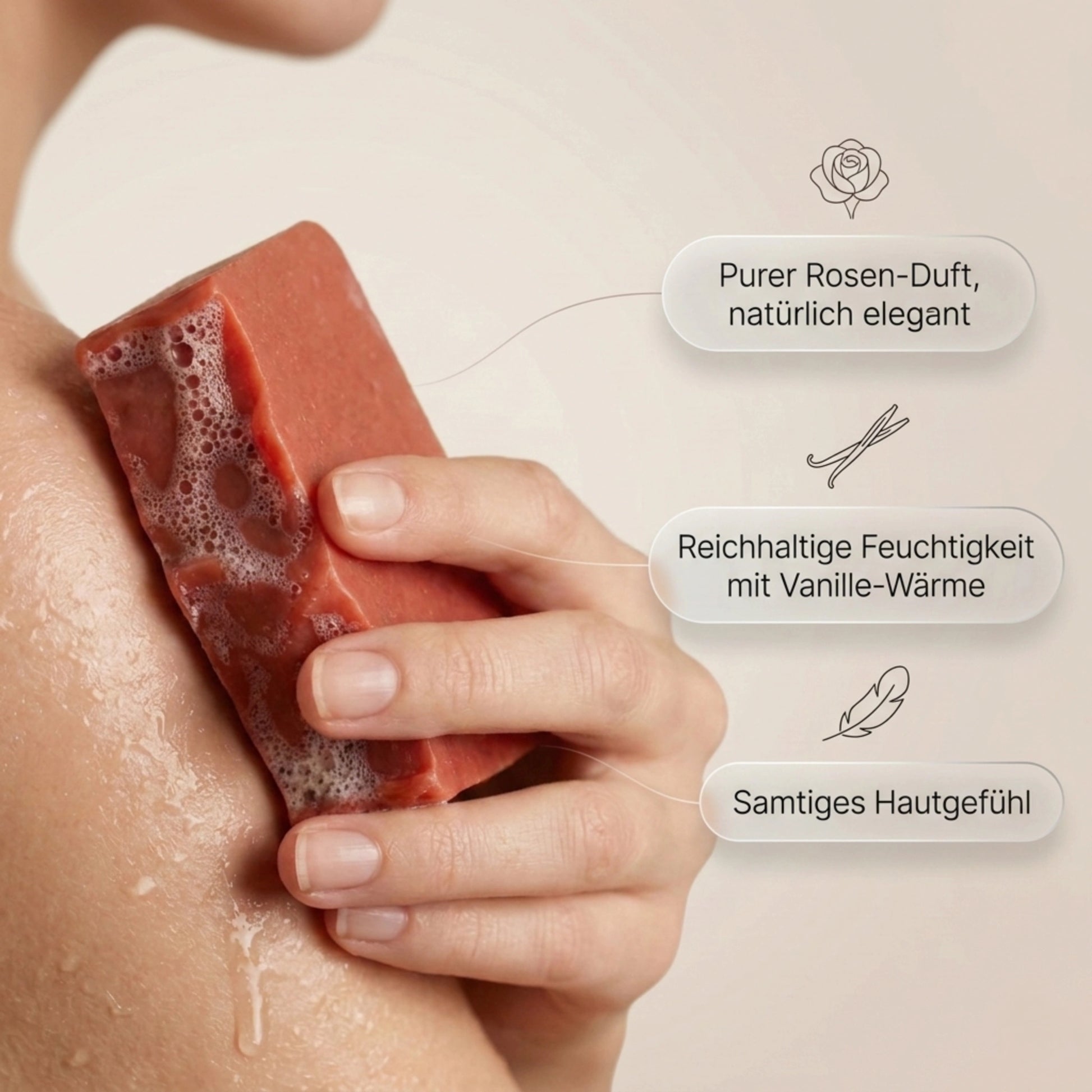 • 100g Rosen & Vanille Naturseife