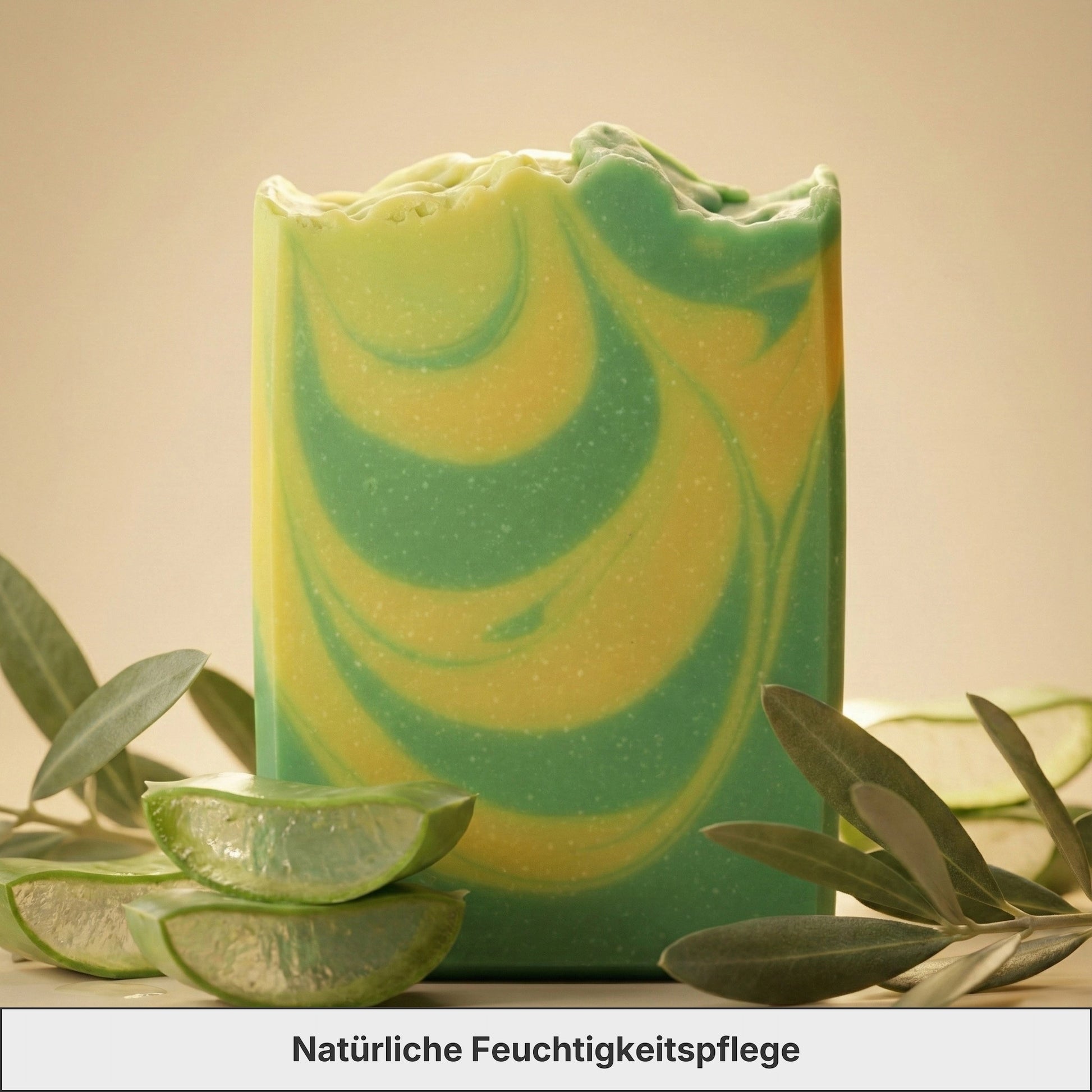 Wenn es um pure Feuchtigkeit geht, ist unsere Aloe Vera Seife der Spitzenreiter. Das Gel der Aloe-Pflanze ist dafür bekannt, Wasser in der Haut zu binden und durstige Zellen regelrecht aufzupumpen. In unserem Bundle ergänzen wir dies jedoch mit der Sheabutter Seife. Während Aloe Vera die Feuchtigkeit liefert, sorgt die Sheabutter mit ihrem hohen Fettanteil dafür, dass diese Feuchtigkeit nicht verdunstet. Zusammen mit der Basis aus Olivenöl bieten beide Seifen eine unschlagbare Strategie gegen Trockenheit.