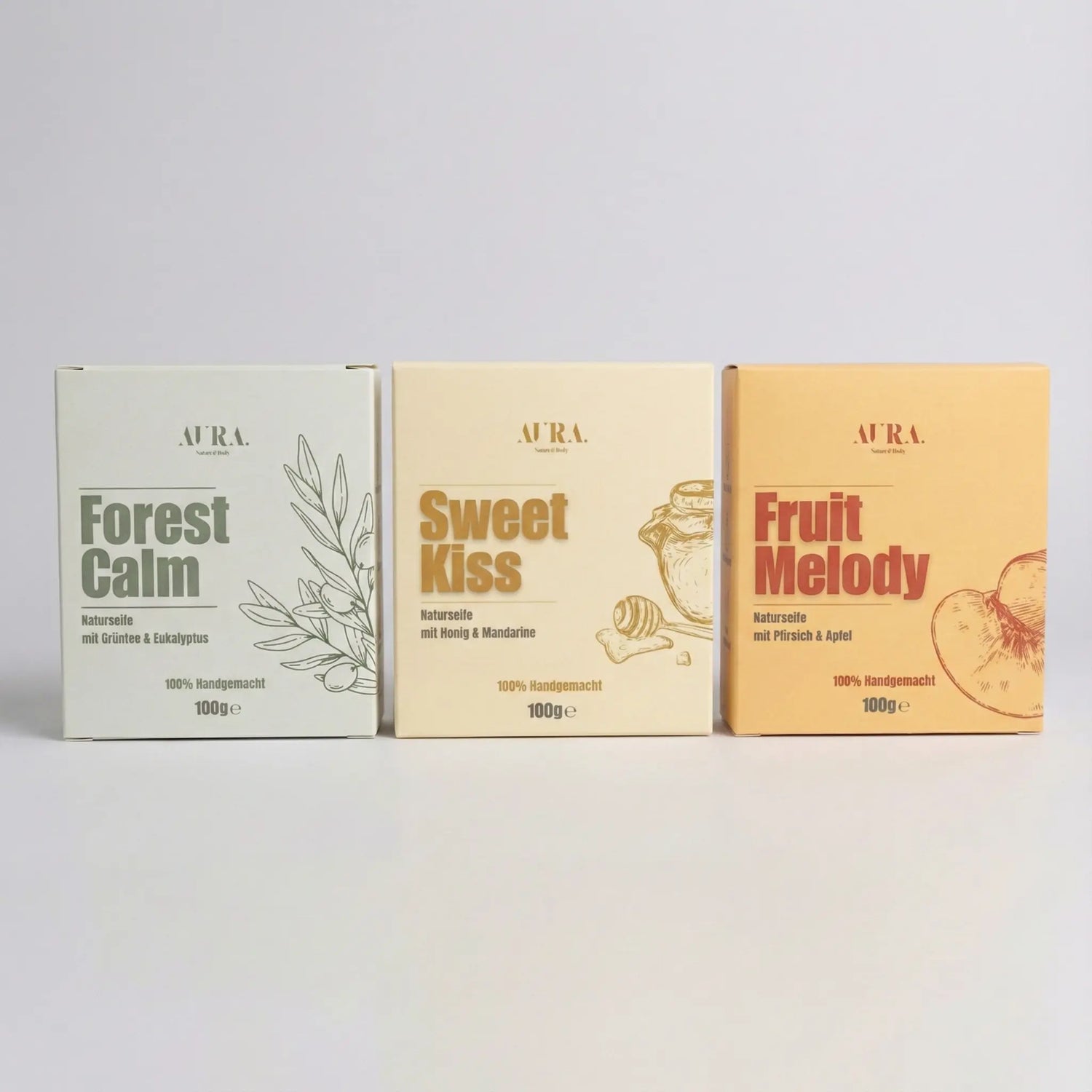 Die Suche nach dem perfekten Geschenk ist oft stressig. Soll es etwas Persönliches sein? Etwas Nützliches? Oder etwas Nachhaltiges? Mit einem Naturseifen-Geschenkset von Aura - Nature & Body musst du dich nicht entscheiden – Du verschenkst alles in einem. Statt Dinge, die im Regal verstauben, schenkst du ein tägliches Wellness-Erlebnis. Unsere Sets sind „Verbrauchsgeschenke" im besten Sinne: Du schenkst Zeit für dich selbst, Pflege für die Haut und Düfte, die die Seele berühren. Ein Geschenk, das zeigt, dass du dir Gedanken um das Wohlbefinden des Beschenkten gemacht hast.