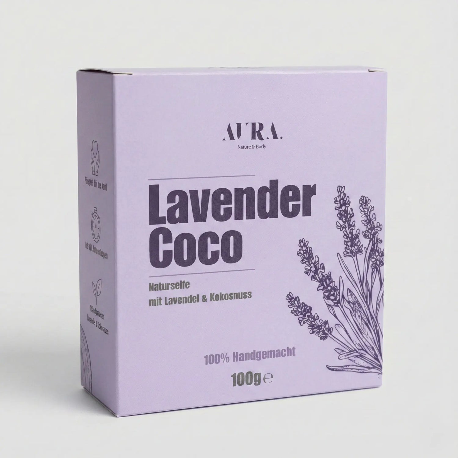 Wenn du bereit bist, deine tägliche Dusche in einen beruhigenden Wohlfühlmoment zu verwandeln, ist unsere „Lavender Coco" die perfekte Wahl. Diese Seife kombiniert die entspannende Kraft des Lavendels mit der reichhaltigen Pflege der Kokosnuss. Du kannst diese und alle weiteren handgemachten Naturseifen von Aura - Nature & Body direkt hier in unserem offiziellen Onlineshop bestellen. Gönn dir ein neues, nachhaltiges Pflegeritual für eine ausgeglichene Seele und eine gepflegte Haut.