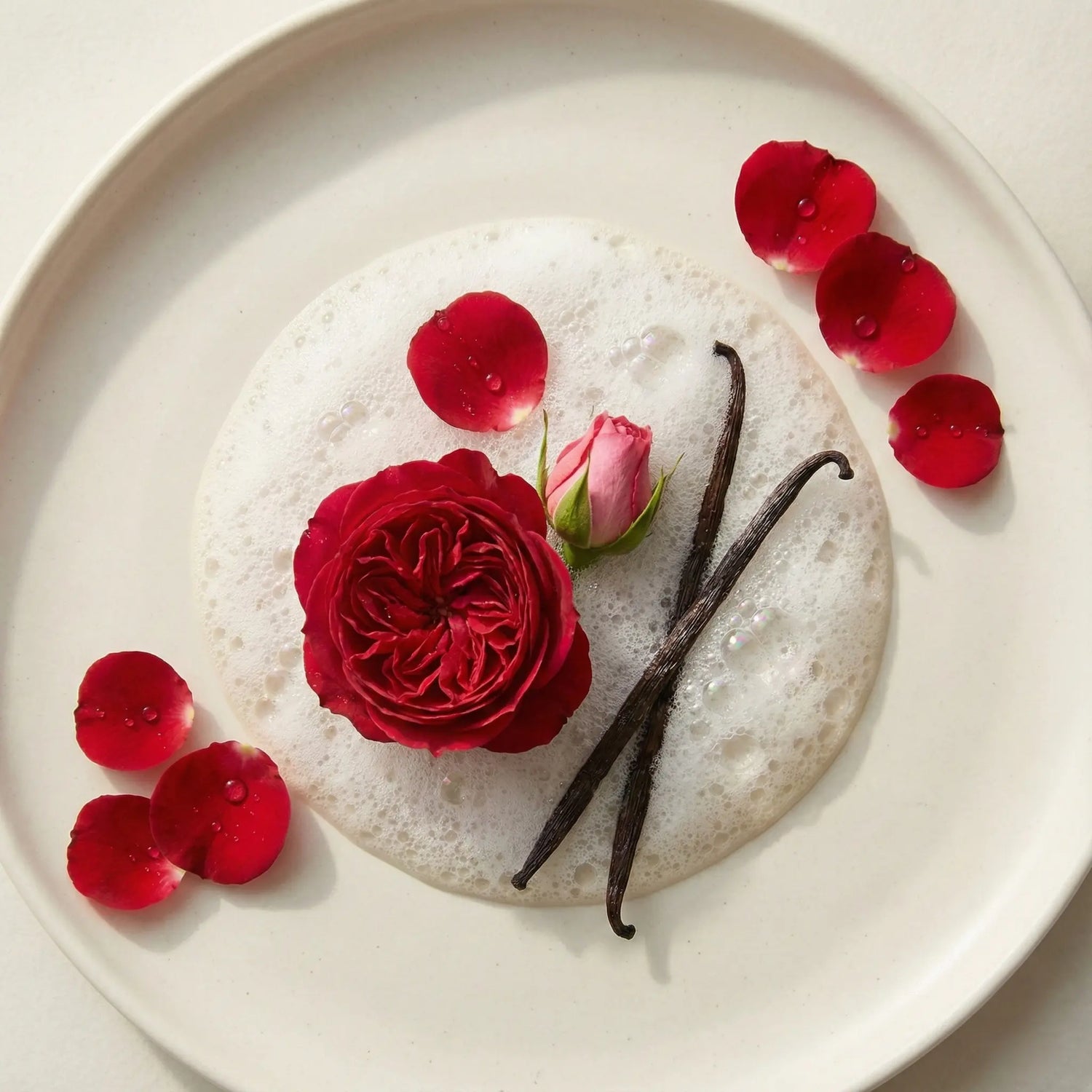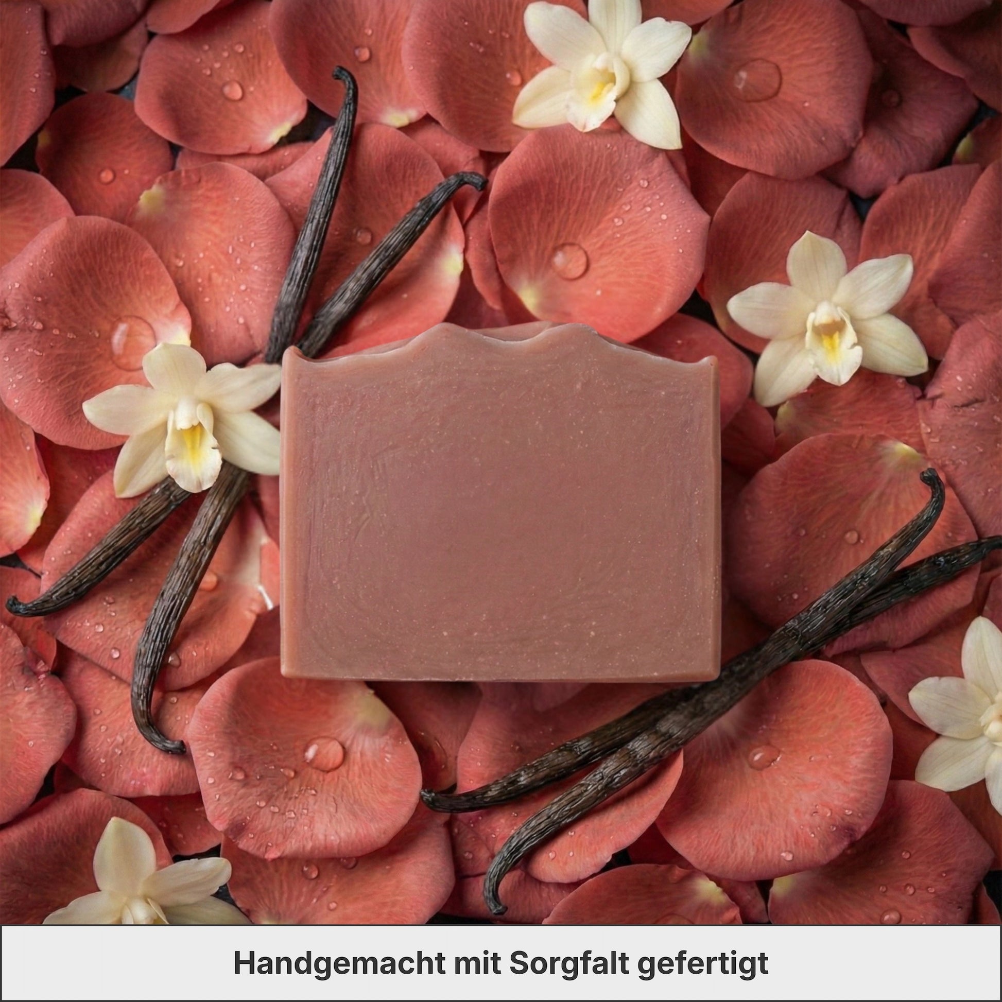 Der Duft einer Seife ist entscheidend für das Duscherlebnis. „Rose Whisper" ist mehr als nur Reinigung; es ist ein Moment der Achtsamkeit. Der Duft von Rose gilt in der Aromatherapie als herzöffnend, harmonisierend und emotional ausgleichend. Er hilft, Stress abzubauen. Vanille ergänzt dies perfekt mit ihrer warmen, einhüllenden und beruhigenden Note, die Geborgenheit vermittelt. Diese Kombination macht deine tägliche Dusche mit unserer Duftseife zu einem luxuriösen Pflegeritual, das Körper und Seele gleichermaßen verwöhnt.
