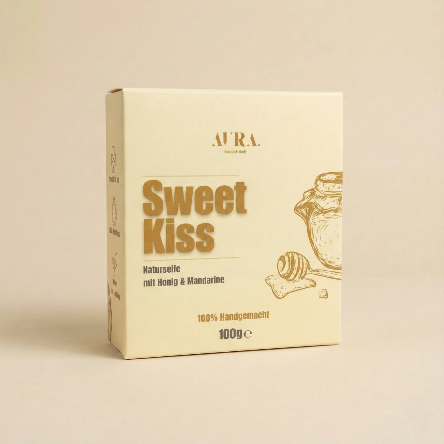 Wenn du auf der Suche nach einer Seife bist, die trockene Haut verwöhnt und deine Sinne belebt, ist unsere Sweet Kiss - Honig & Mandarine die perfekte Wahl. Diese nährende Honigseife kombiniert reichhaltige Pflege mit einem wunderbar fruchtigen Duft. Sie ist ideal für alle Hauttypen, besonders aber für Haut, die sich nach Feuchtigkeit und Weichheit sehnt. Du kannst diese und alle anderen Aura - Nature & Body Naturseifen direkt hier in unserem Onlineshop kaufen. Gönn dir ein neues, nachhaltiges Pflegeritual und freue dich auf ein unvergleichlich sanftes Hautgefühl.